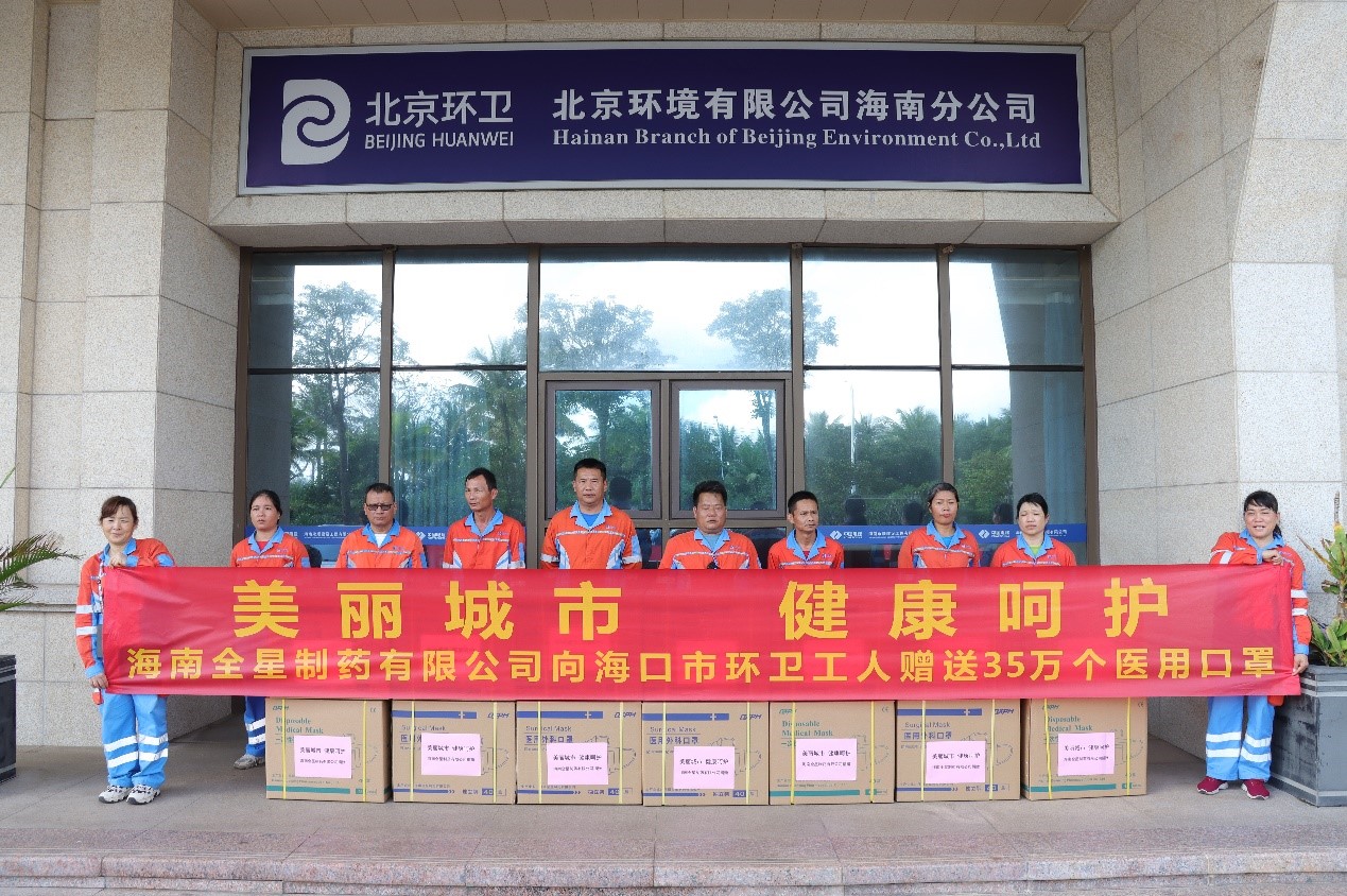 海南全星制藥有限公司向海口市環衛工人贈送35萬個醫用口罩